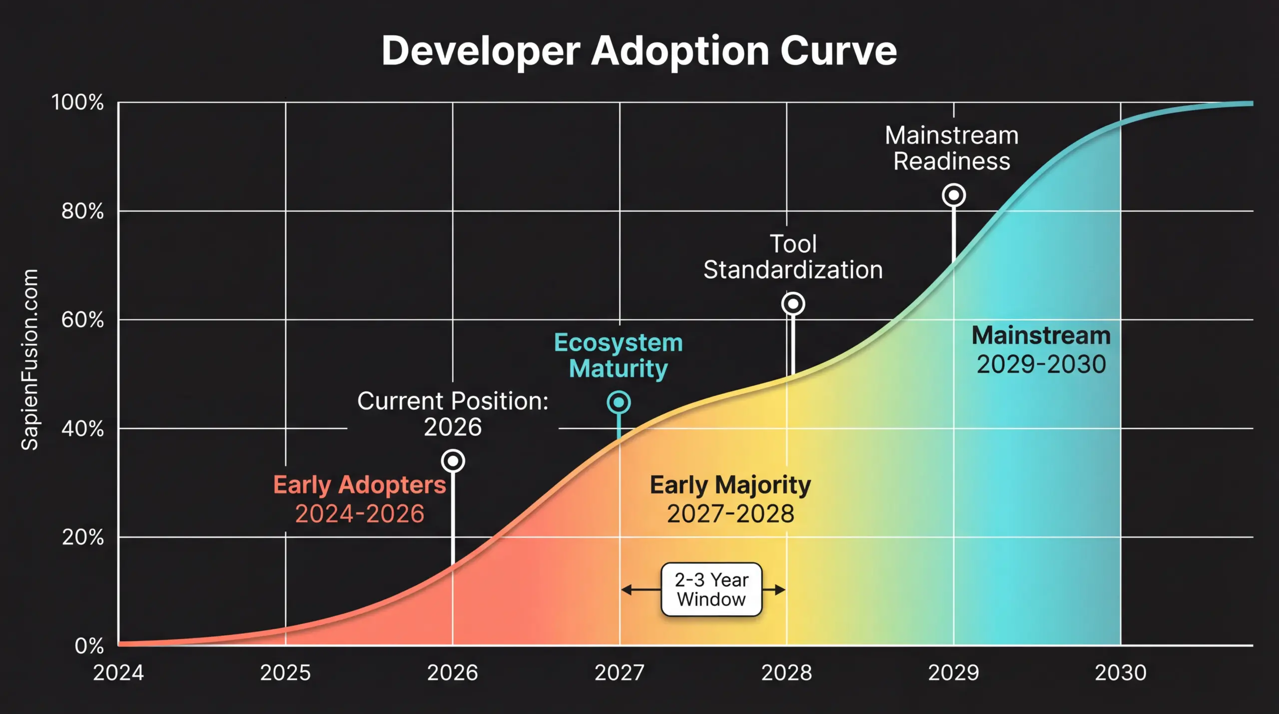 The timeline matters significantly. Organizations beginning development now achieve production deployment in 2026-2027 as early ecosystem participants. Those waiting for mature tools begin development in 2027-2028 and deploy in 2029-2030. This 2-3 year difference determines whether organizations lead market transitions or follow established players.